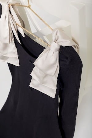 Black ribbon knit dress/¥13,000